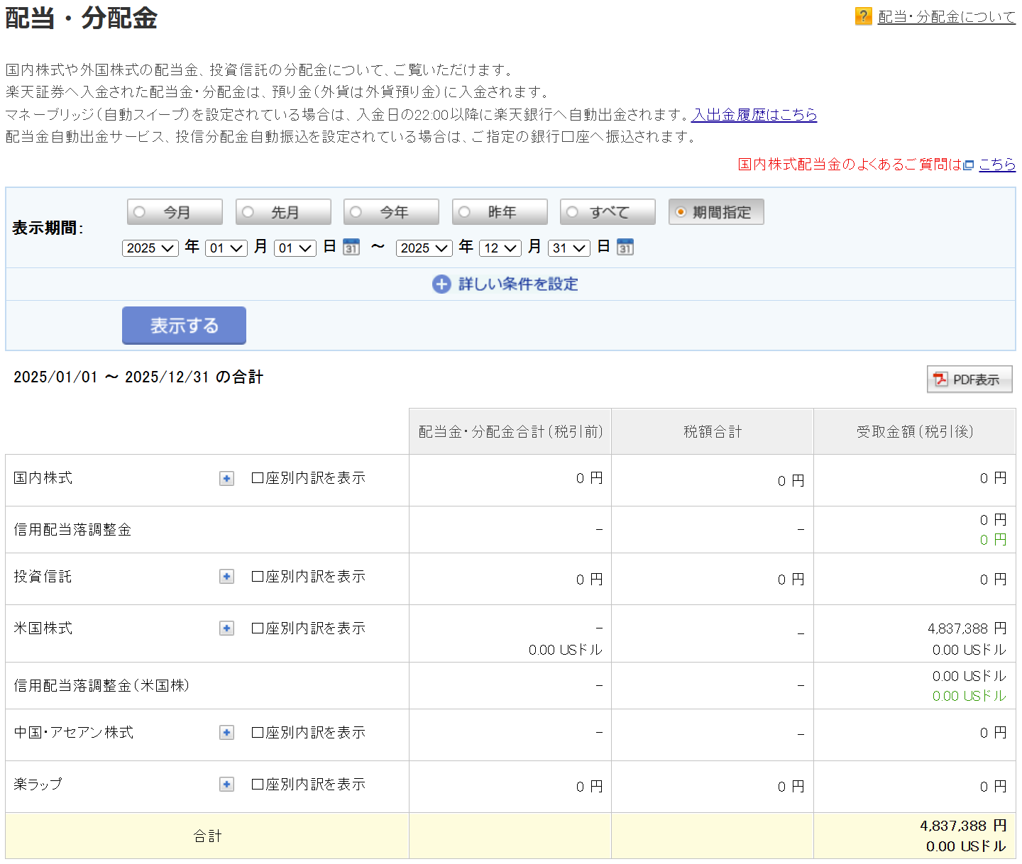 【2025年1月1日~12月31日までの受取配当】