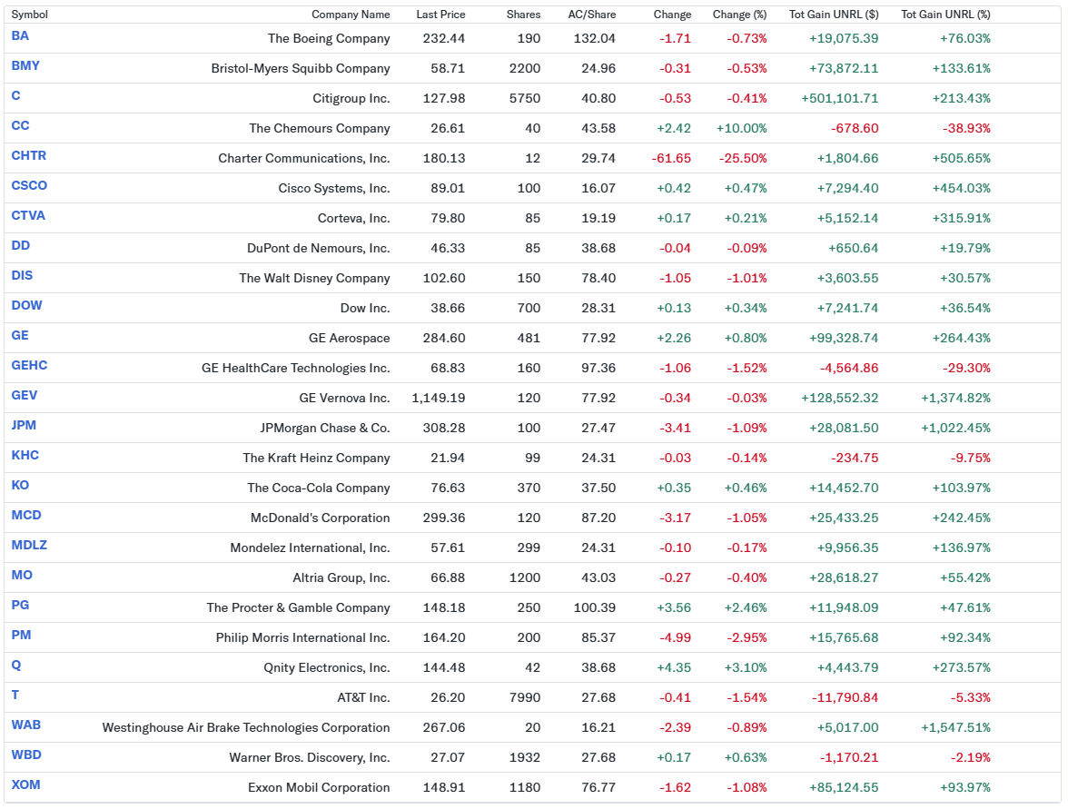 - 平均取得価額が「0.0000」のものはスピンオフやティッカーシンボル変更などの理由で、実際に自分が費やした金額ではないことに注意