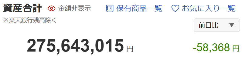 累計損益(累計投資と資産より):70,753,564円/88.4%