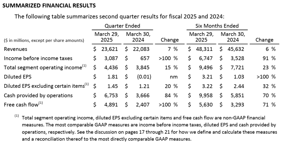 - 2025年第2四半期の売上高(Revenues)は236億2100万ドル、前年同期は220億8300万ドルで前年同期比7%の増加
