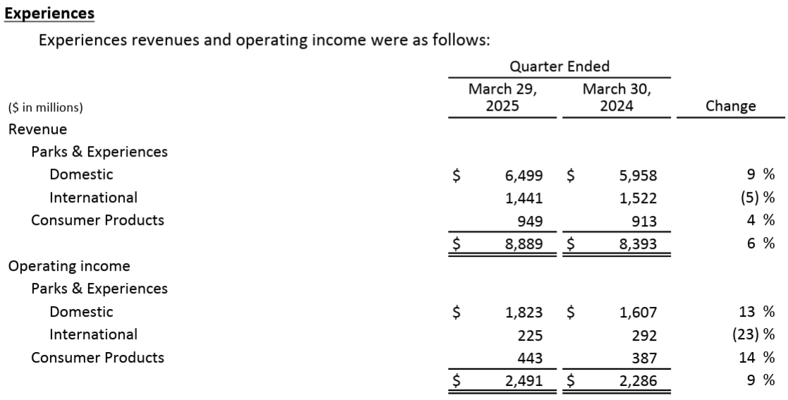 - Parks & Experiences(Domestic):18億2300万ドル、前年同期比13%増