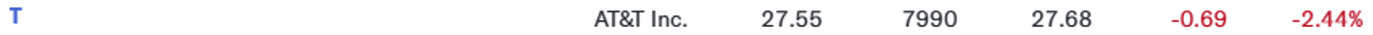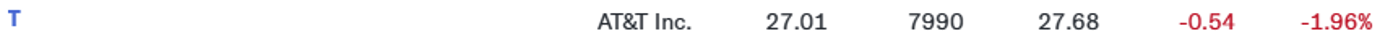 と2日続けて大きく減少。その要因として一番割合の高いシティグループが大きく下落したことには言及したが、よく見てみると2番目に割合の高いAT&T(T)も