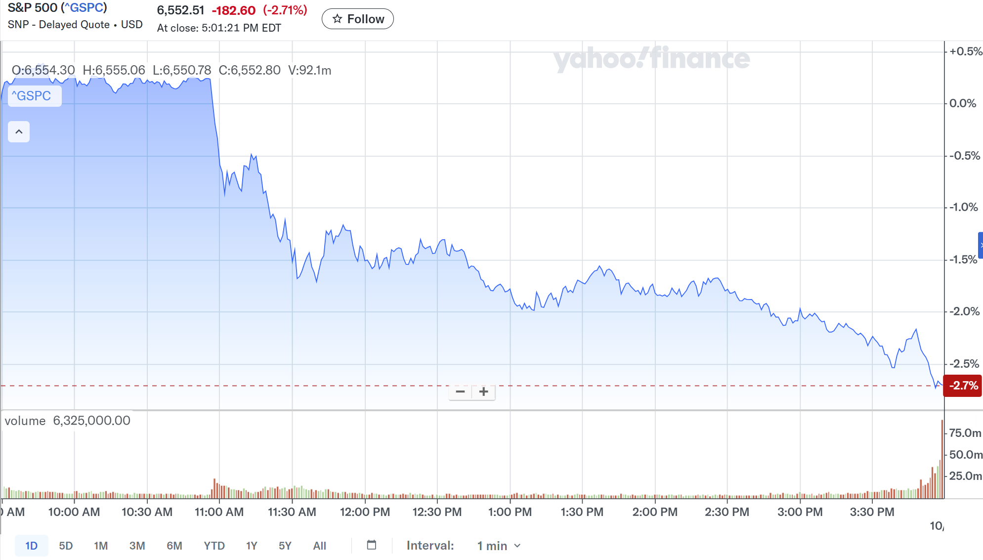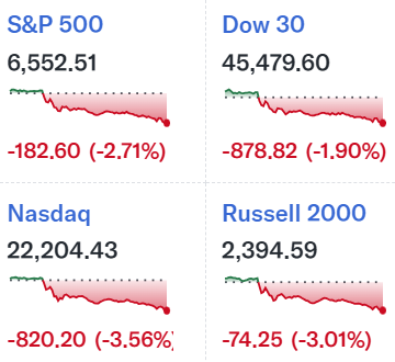 自分が寝る前までは10月の堅調な流れでややプラスだったのが、ある時点から急激に悪化して主要3株式指数ともに大きく下落し、1日で10月の上昇分を上回る下落となって取引を終えている。