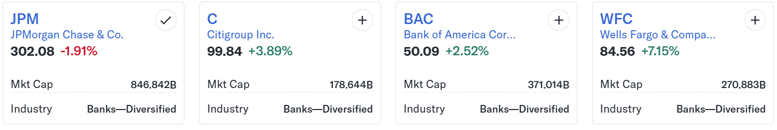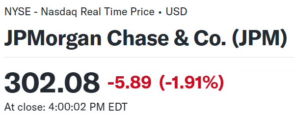 色々な出来事があってまちまちだったのと比べるとJPモルガンの下落幅はかなり大きい。また同日の大手銀行株の株価