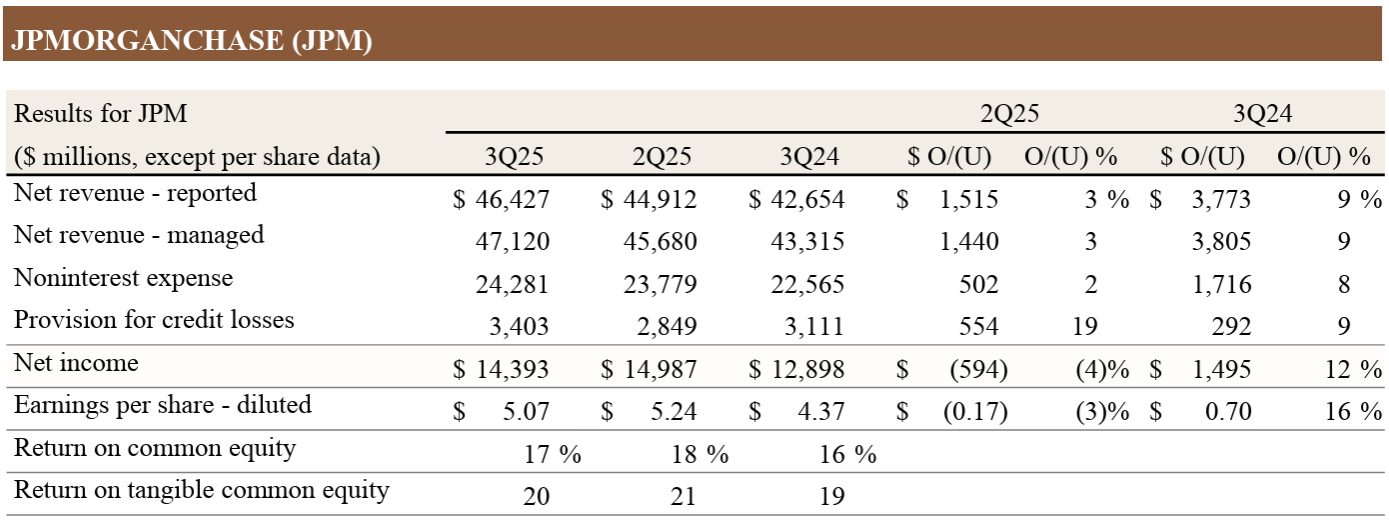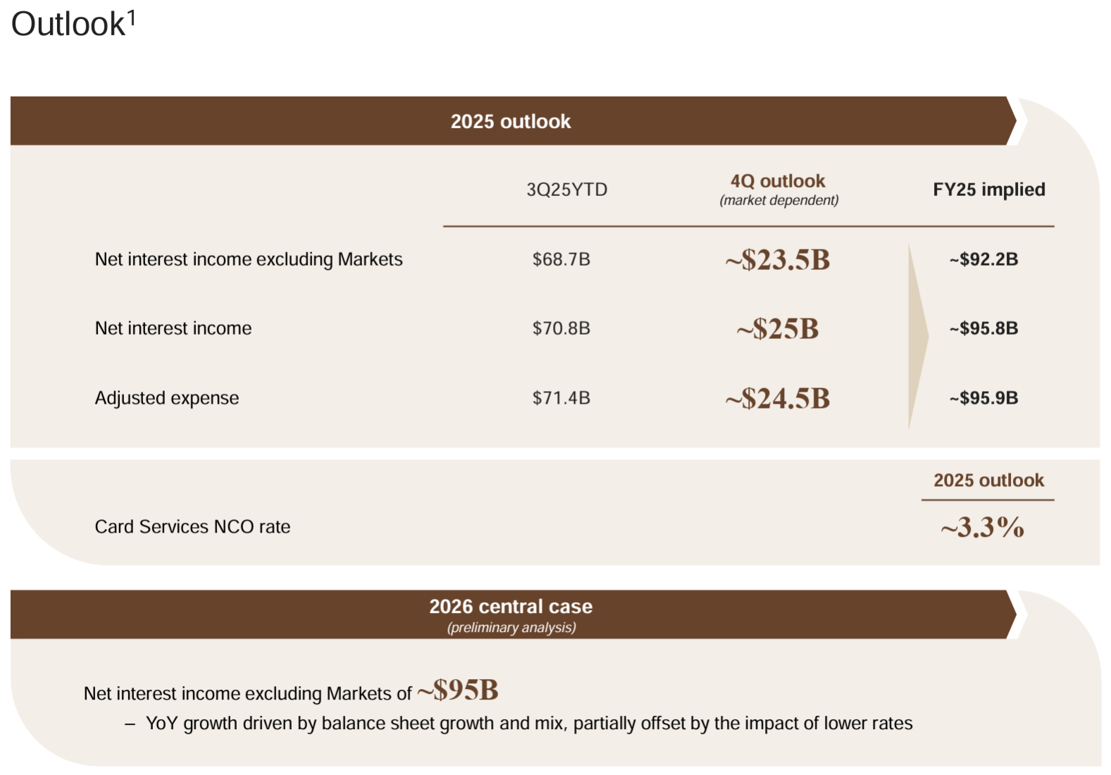 - 2025年第3四半期の純金利収入(Net Interest Income:NII)は240億7000万ドル、市場予想の241億6000万ドルを下回っている