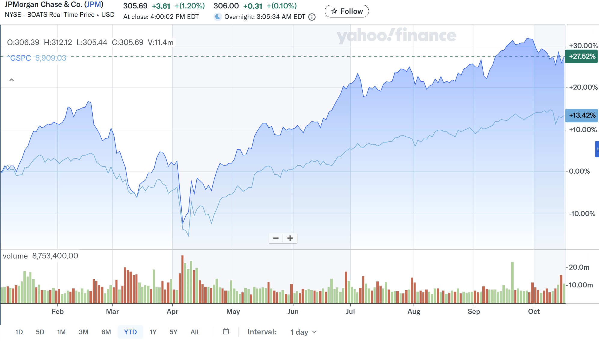 2025年10月14日(火)から米国企業の四半期決算発表(主に2025年7~9月)が本格化した。いつもの様に自分の所有している銘柄ではJPモルガン・チェース(JPM)が先陣を切って決算を発表している。