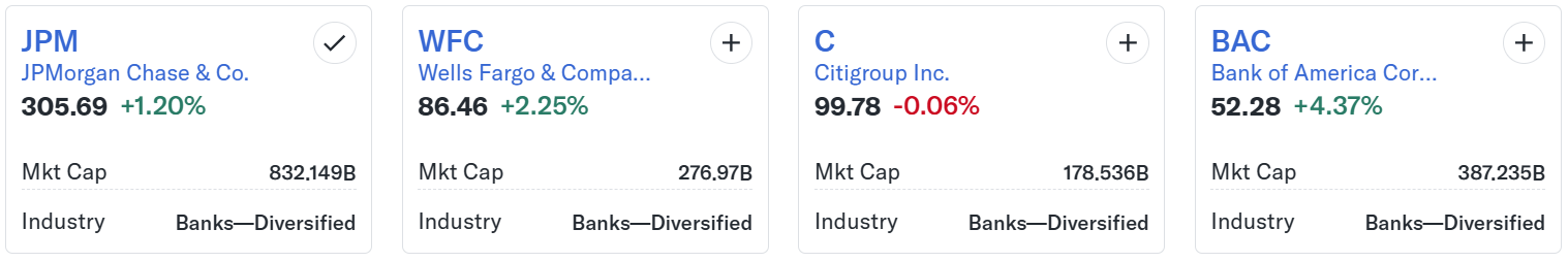 と比べてもJPモルガンだけが下落している(シティグループ(C)、ウェルズ・ファーゴ(WFC)も決算発表日)。