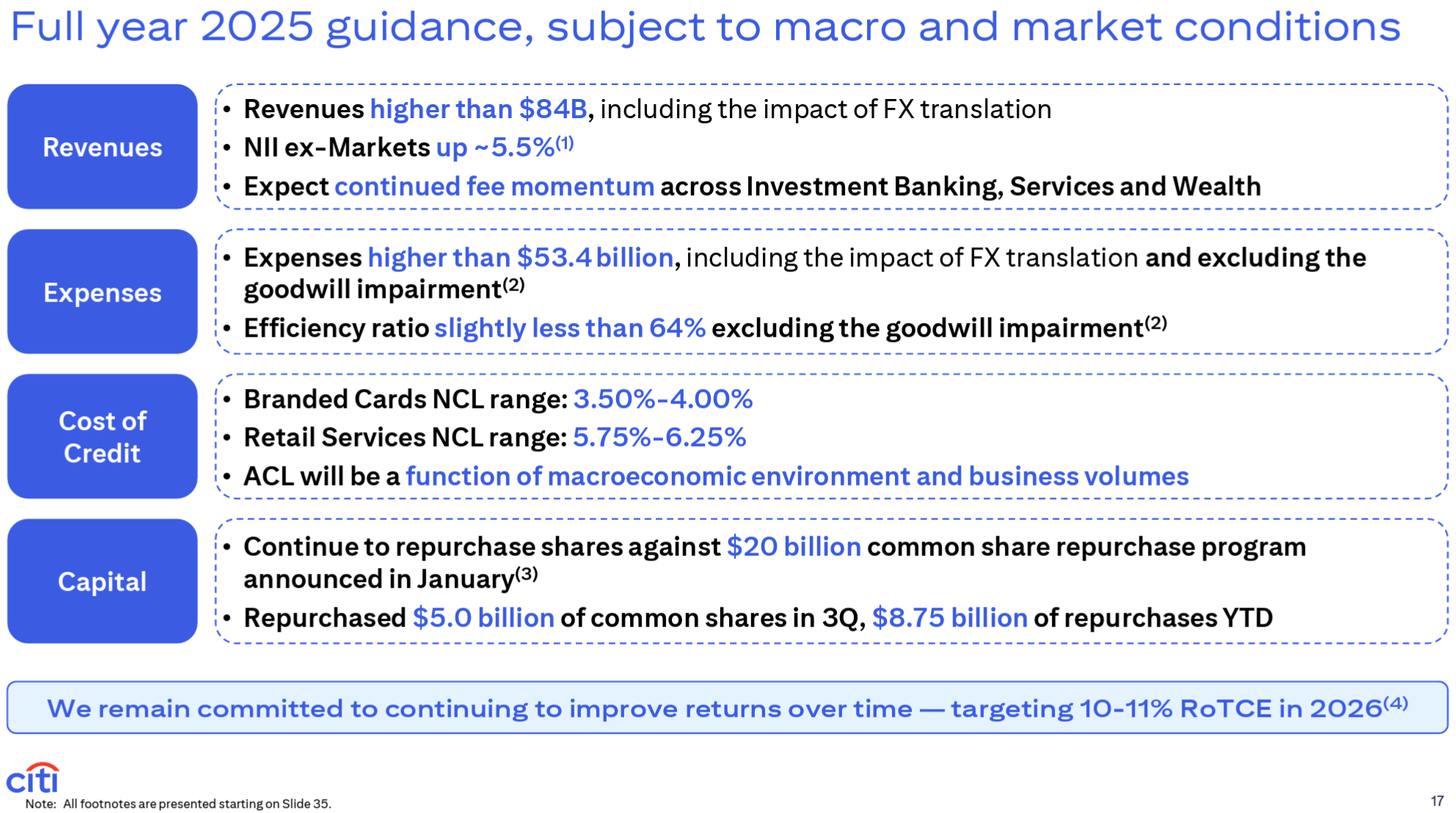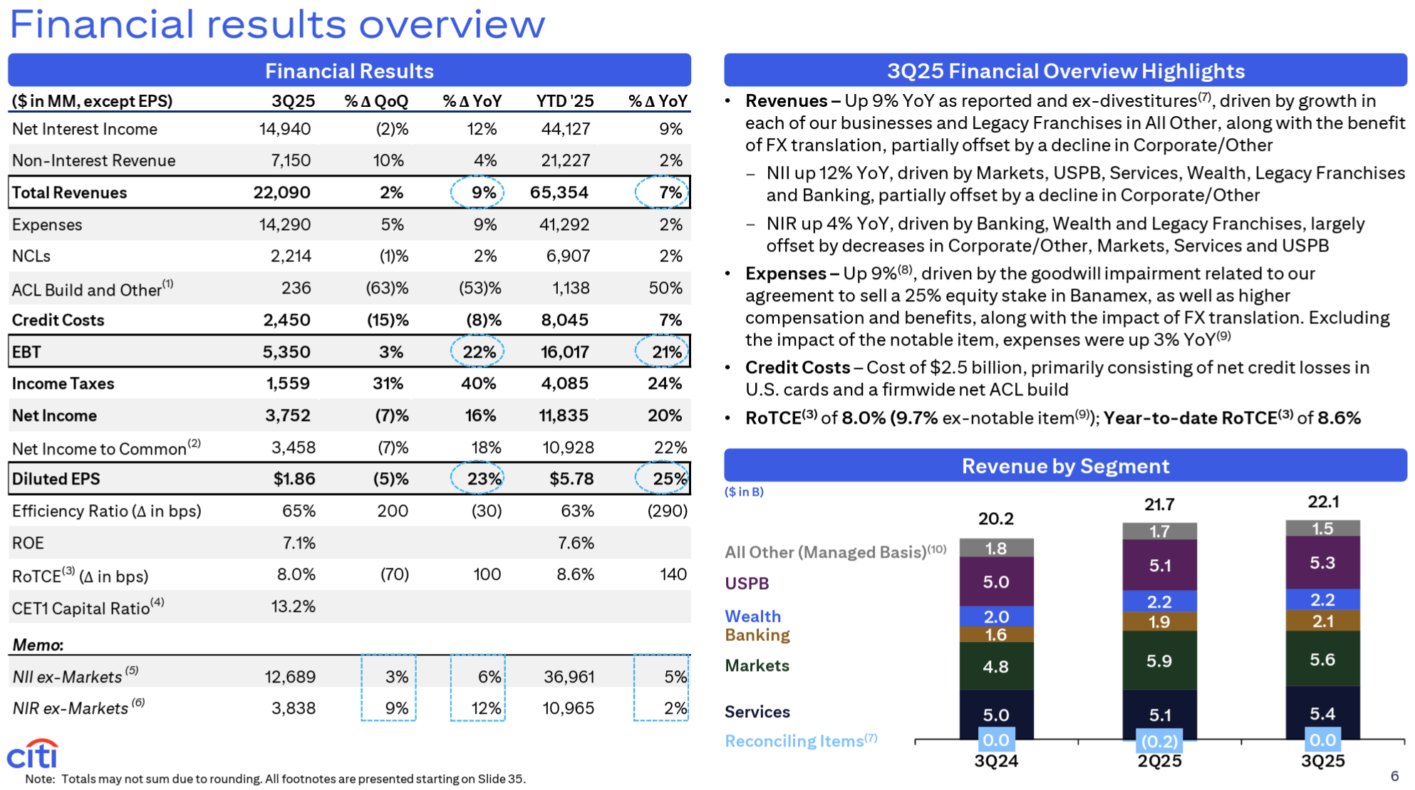 そんな状況の中で今回のシティ2025年第3四半期決算はどうだったのか。その内容、そして決算後の株価について以下に確認して整理しておく。