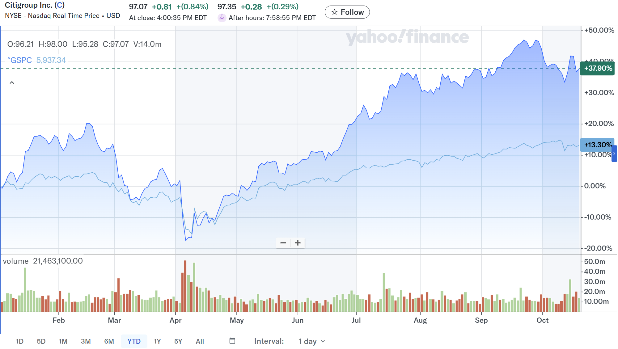 2025年10月14日(火)には自分の所有しているシティグループ(C)の2025年第3四半期決算発表があった。