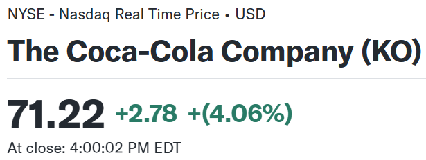 あまり大きな変動は無くまちまちだったのと比べると、コカ・コーラ株の上昇はかなり大きい。