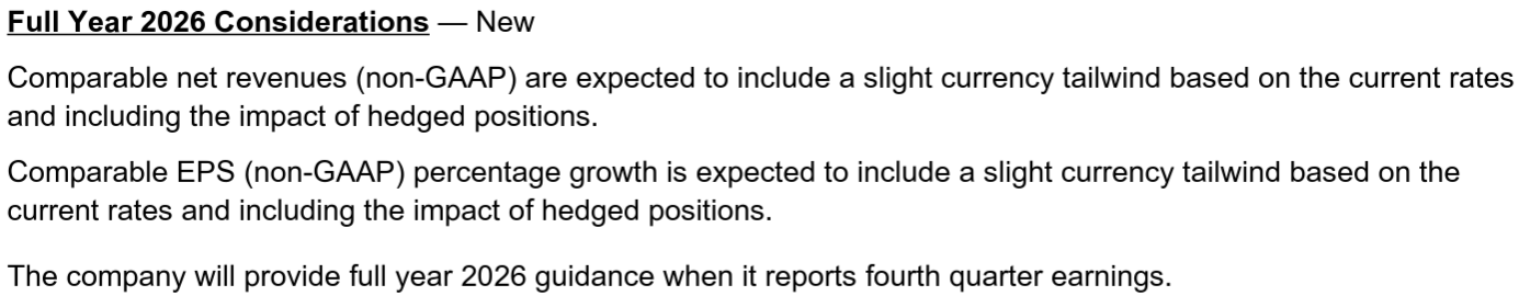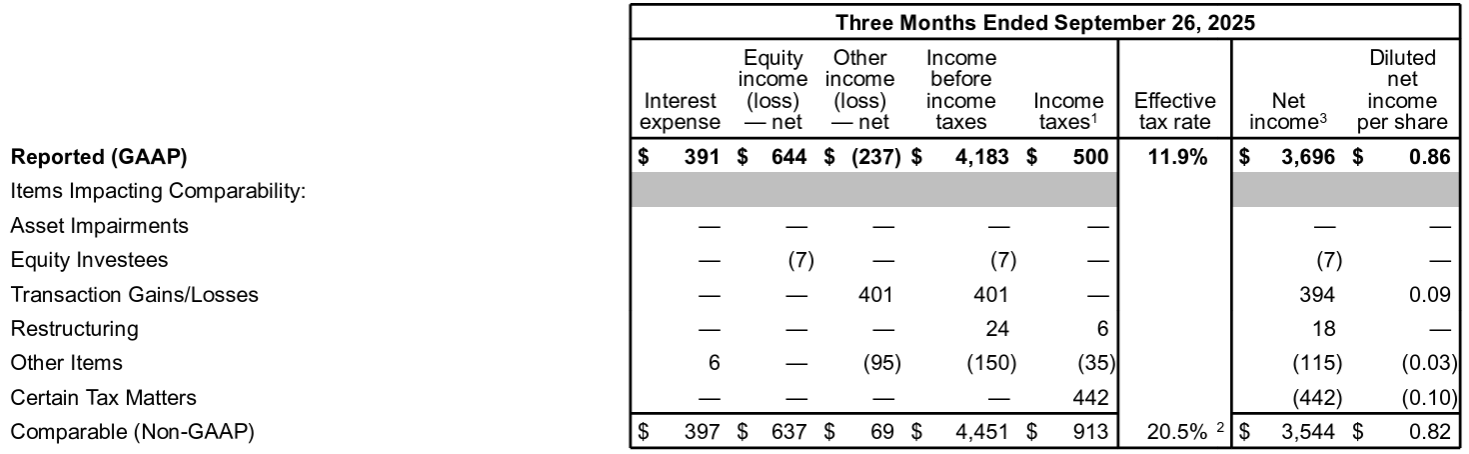 - 2025年第3四半期のNon-GAAPベースの比較可能な一時項目を除く1株当たり利益(Comparable Diluted Net Income Per Share)は0.82ドルで前年同期比6%増加