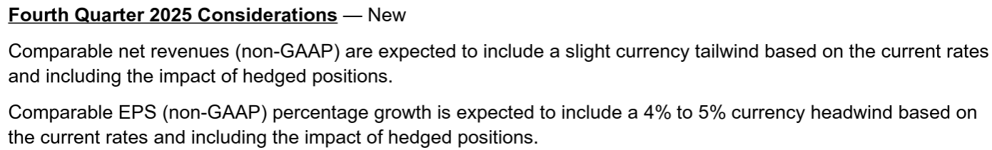 - 2025年第3四半期のNon-GAAPベースの比較可能な一時項目を除く1株当たり利益(Comparable Diluted Net Income Per Share)は0.82ドルで、市場予想の0.78ドルを上回っている