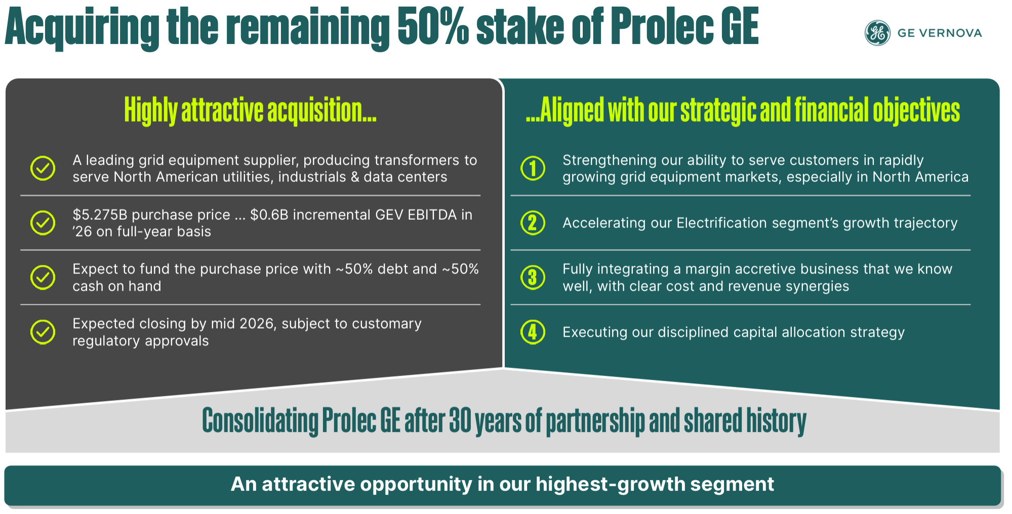 - 北米の電力会社、産業施設、データセンター向けに変圧器を製造する大手グリッド機器プロバイダーを統合することは、GE Vernovaにとって魅力的な買収となる