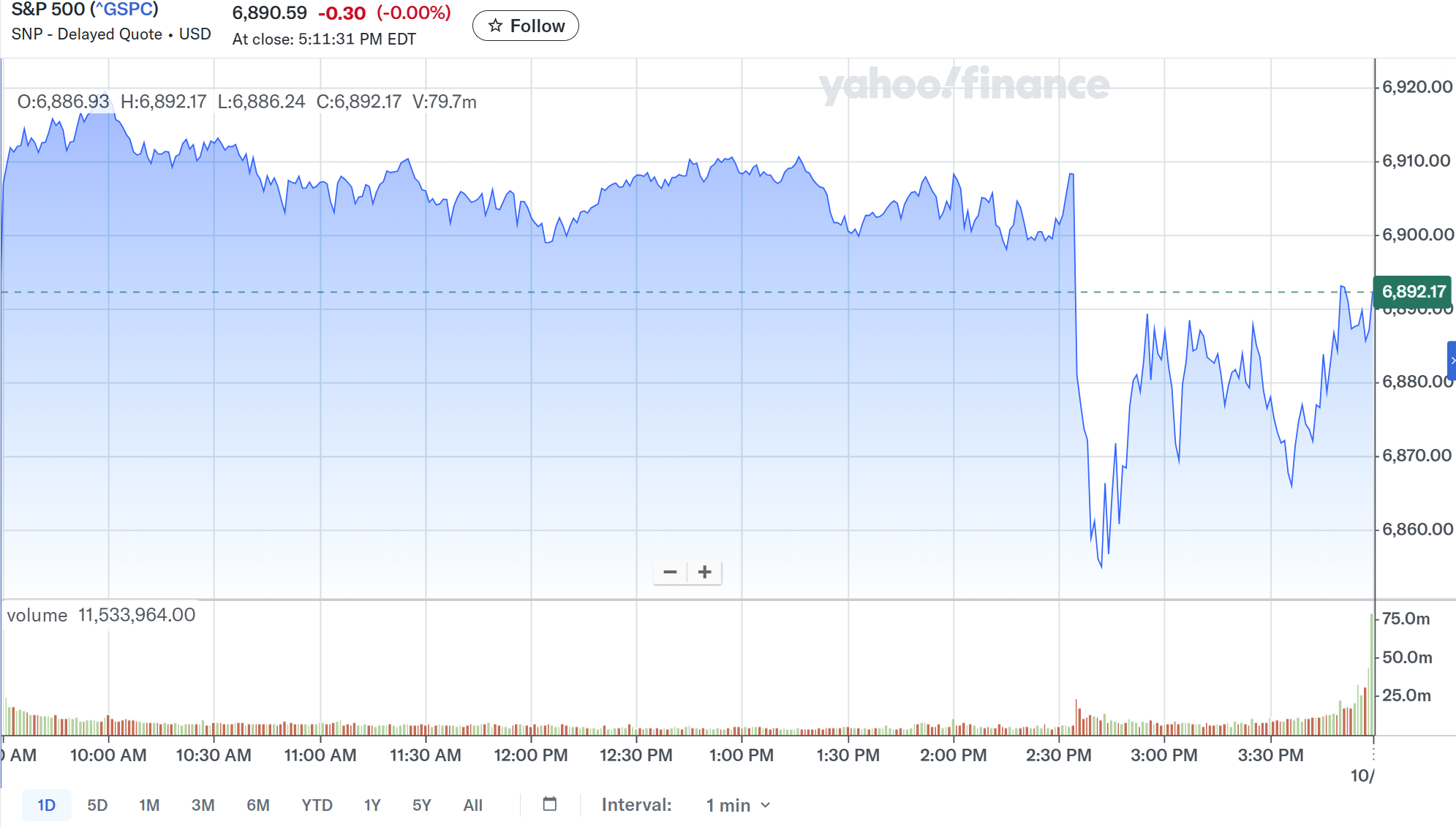 主要3指数はFOMC発表を控えて前日比上昇してほぼ横ばいが続いたが、一定のタイミングで大きく下落。S&P 500の日中の動きを見てみると