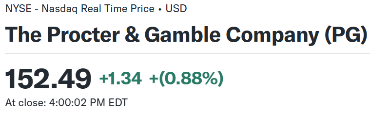 遅れて発表となった米消費者物価指数(CPI)が市場予想を下回ったことで全面高となったことを考えると、P&G株の上昇は市場なりといった所だろうか。