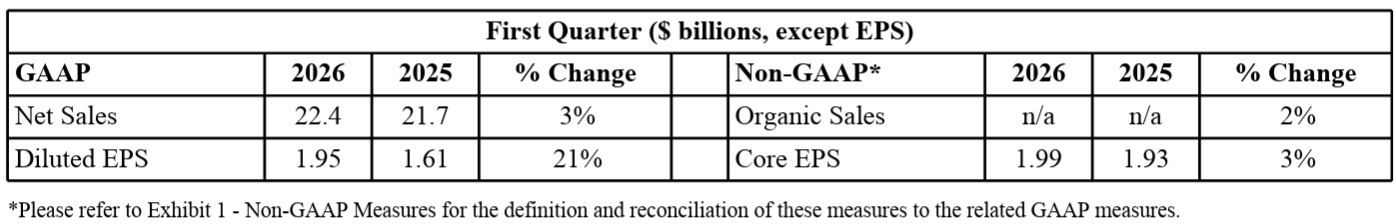 - 2026年第1四半期のNon-GAAPベースの中核事業一株当たり利益(Non-GAAP Core EPS)は1.99ドル、前年同期は1.93ドルで前年同期比3%の増加
