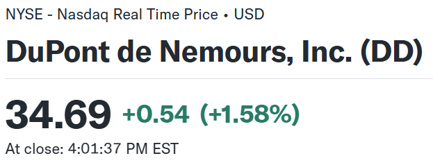 デュポン・ドゥ・ヌムール(DD):所有株数85株、総投資額3,287.41ドル、平均取得価額@38.68ドル