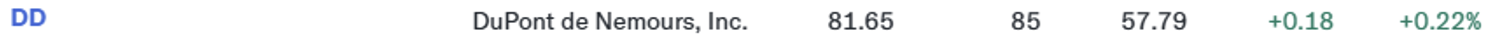 デュポン・ドゥ・ヌムール(DD):所有株数85株、総投資額3,287.41ドル、平均取得価額@38.68ドル