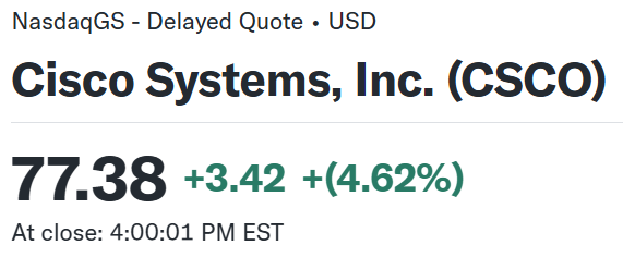 そんな状況の中、シスコの今回決算及びそれを受けて株価はどうなったのか。以下に確認し整理しておく。