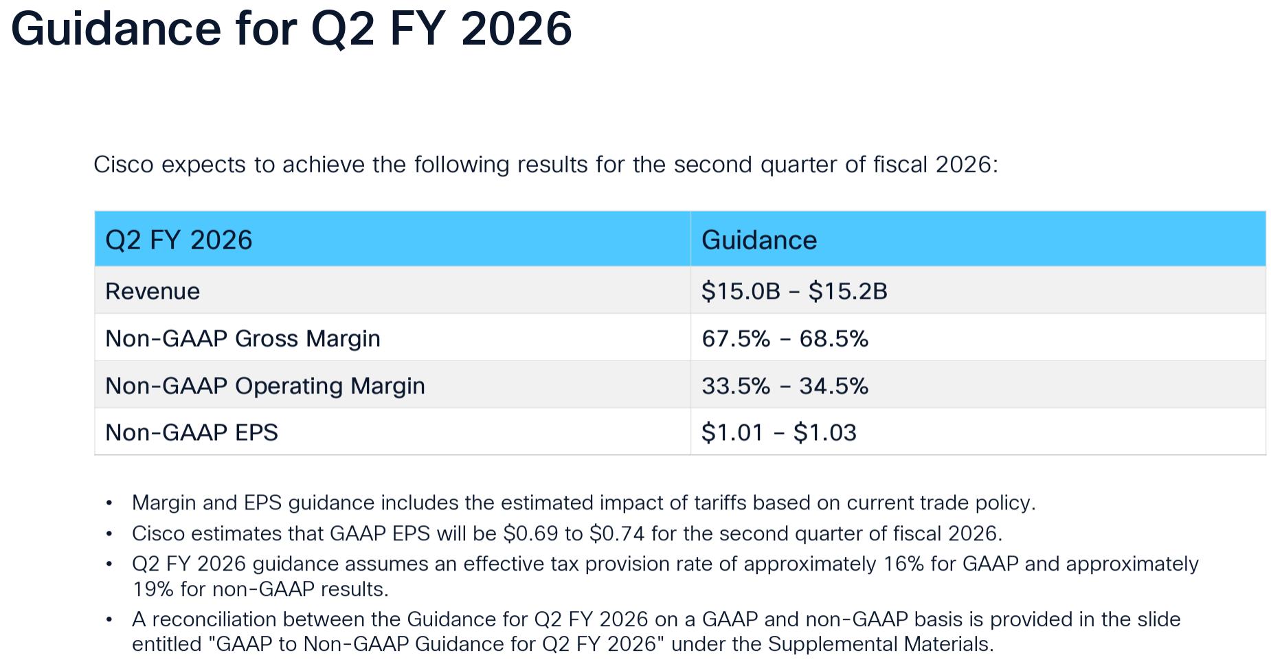売上、EPSは市場予想をやや上回った程度だが、旺盛なAI関連需要から通期見通しを早くも引き上げたことが評価されたのだろう。また決算を受けて多くのアナリストがシスコの目標株価を引き上げている(調べた限りでは8社)ことも影響しているのだろう。