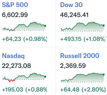 開場直後は前日の状況を踏まえてか横ばいで方向感が定まらない動き。同日発表の11月ミシガン大学消費者信頼感指数(速報値)が50.3と市場予想の53.2を下回ったことでS&P 500、NASDAQ総合は一時前日比マイナスとなる局面も。しかしニューヨーク地区連銀のJohn Williams総裁の講演内容を受け12月FOMCでの利下げが有力視されるにつれ徐々に上昇傾向となり、一本調子のではないもののいずれも前日比1%程度の上昇で取引を終えている。