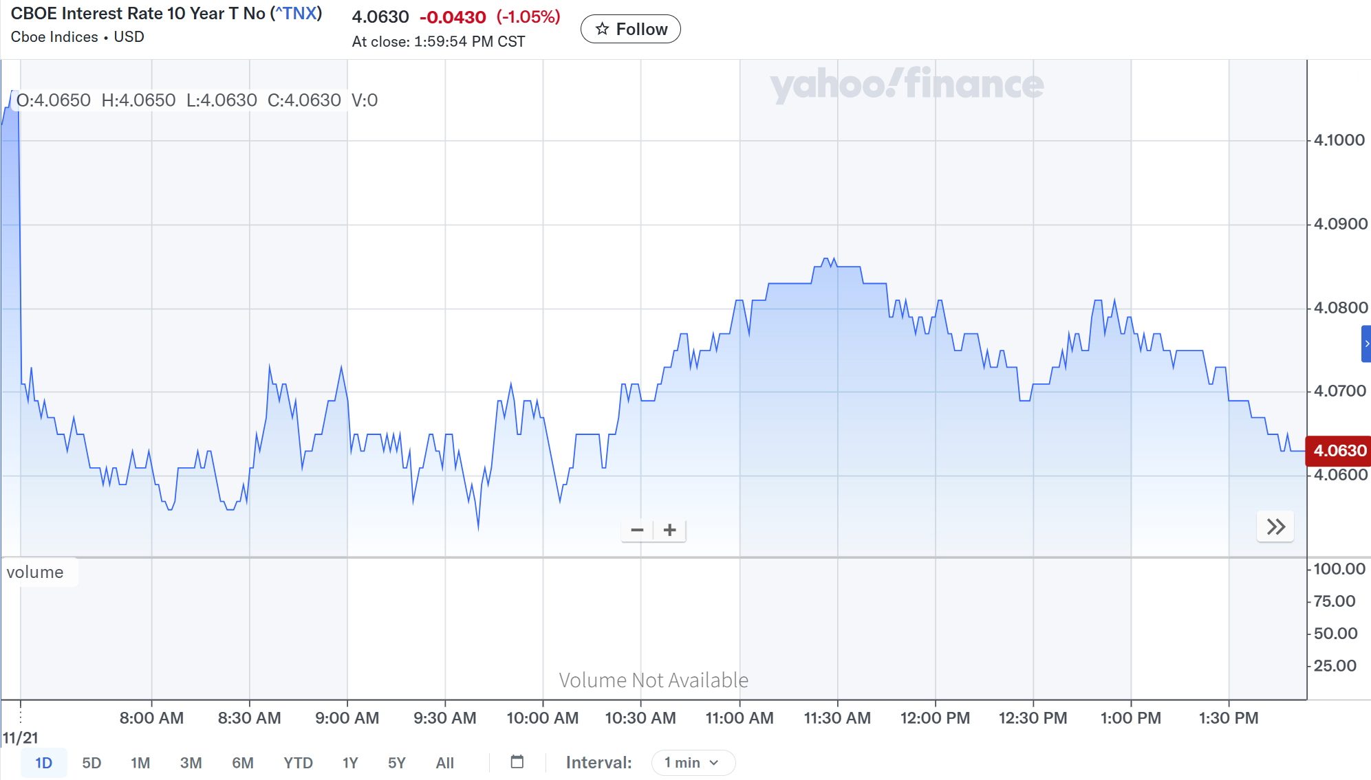 こちらは株式市場とは異なり、開場前のニューヨーク地区連銀のJohn Williams総裁の講演内容を受けて利回りは大きく低下してスタート。その後は方向感に欠ける動きではあったもののほぼ開場直後の水準で取引を終えている。