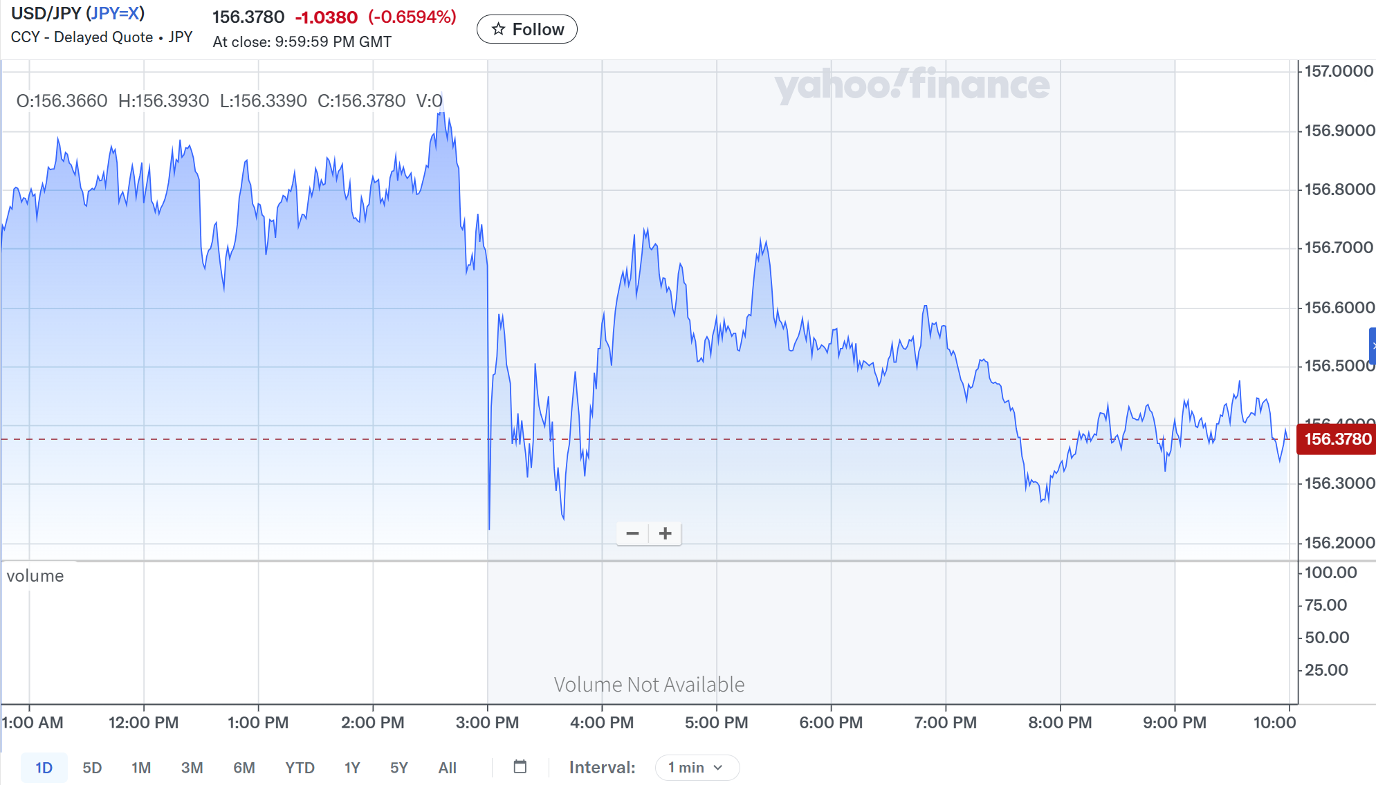 米国市場開場前にあったニューヨーク地区連銀のJohn Williams総裁の講演内容には当初反応が薄く1ドル=156円台後半だったが、ミシガン大学消費者信頼感指数(速報値)に大きく反応して1ドル=156円台前半に。その後は方向感に乏しい動きが続きながら1ドル=156円台前半で週の取引を終えている。