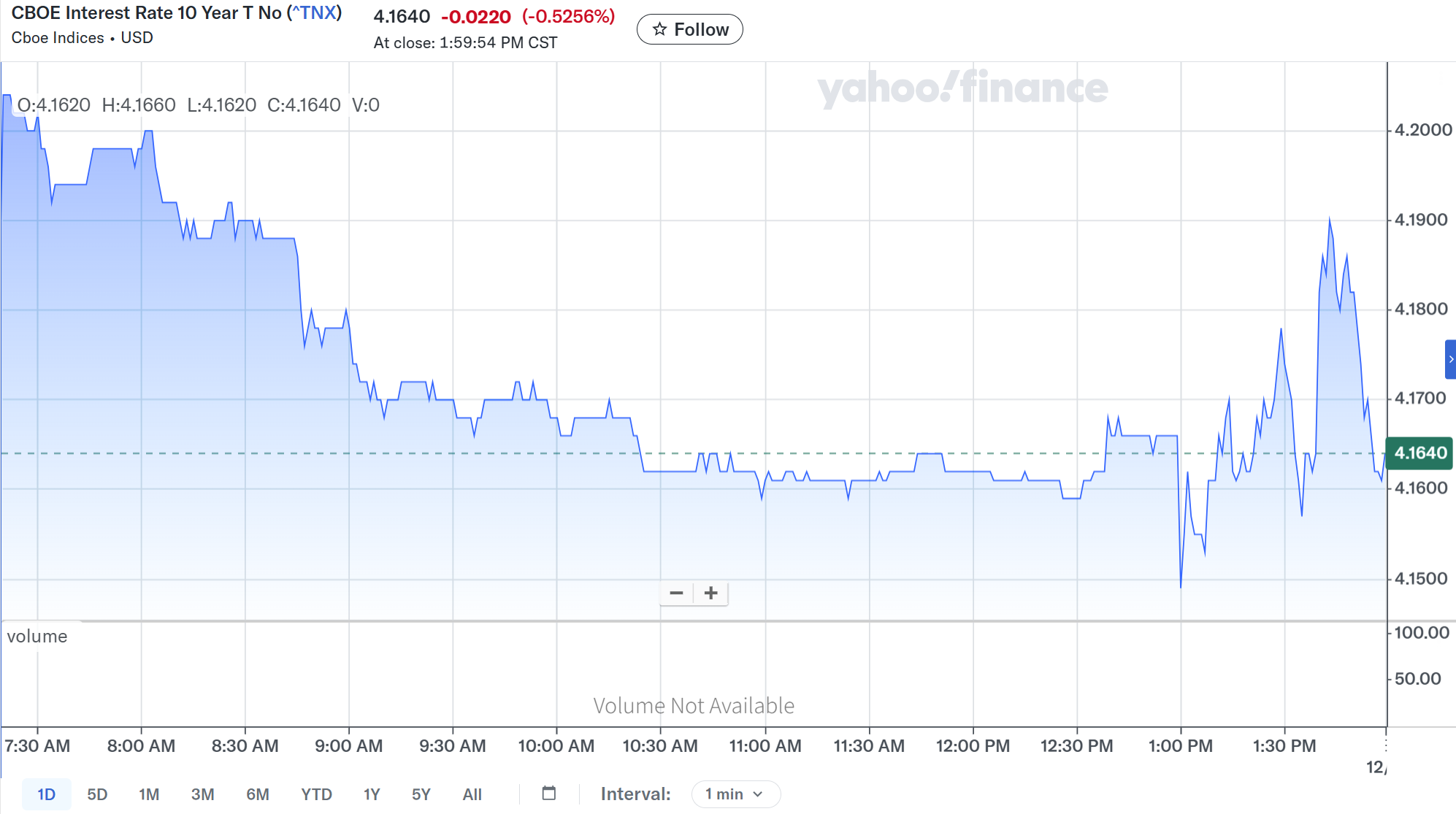 市場予想通りに利下げが行われたことで上昇し、経済予測要旨では来年1回の利下げが示唆されたがパウエル議長が会見で労働市場の軟化を強調したことが、2026年の追加緩和に含みを持たせるものと受け止められ会見時に一段高となった理由と思われる。