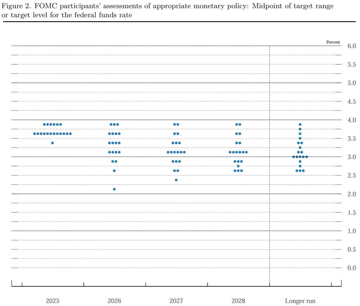 ただ内訳をみると、参加者19名間では2026年利下げについて大きなバラつきがあることが見て取れる。