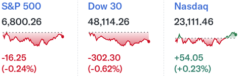 ダウ工業平均の下げ幅がやや大きいのは、ニューヨーク原油先物価格が2021年以来となる1バレル=55ドル台の安値となったことでエネルギー関連銘柄、製薬大手のファイザー(PFE)がCOVID-19関連製品の売上高低迷などにより来年から数年間厳しい状況が続くとの見通しを示したことで製薬銘柄が軟調だったことが影響したのだろう(ただしファイザーはダウ構成銘柄ではない)。
