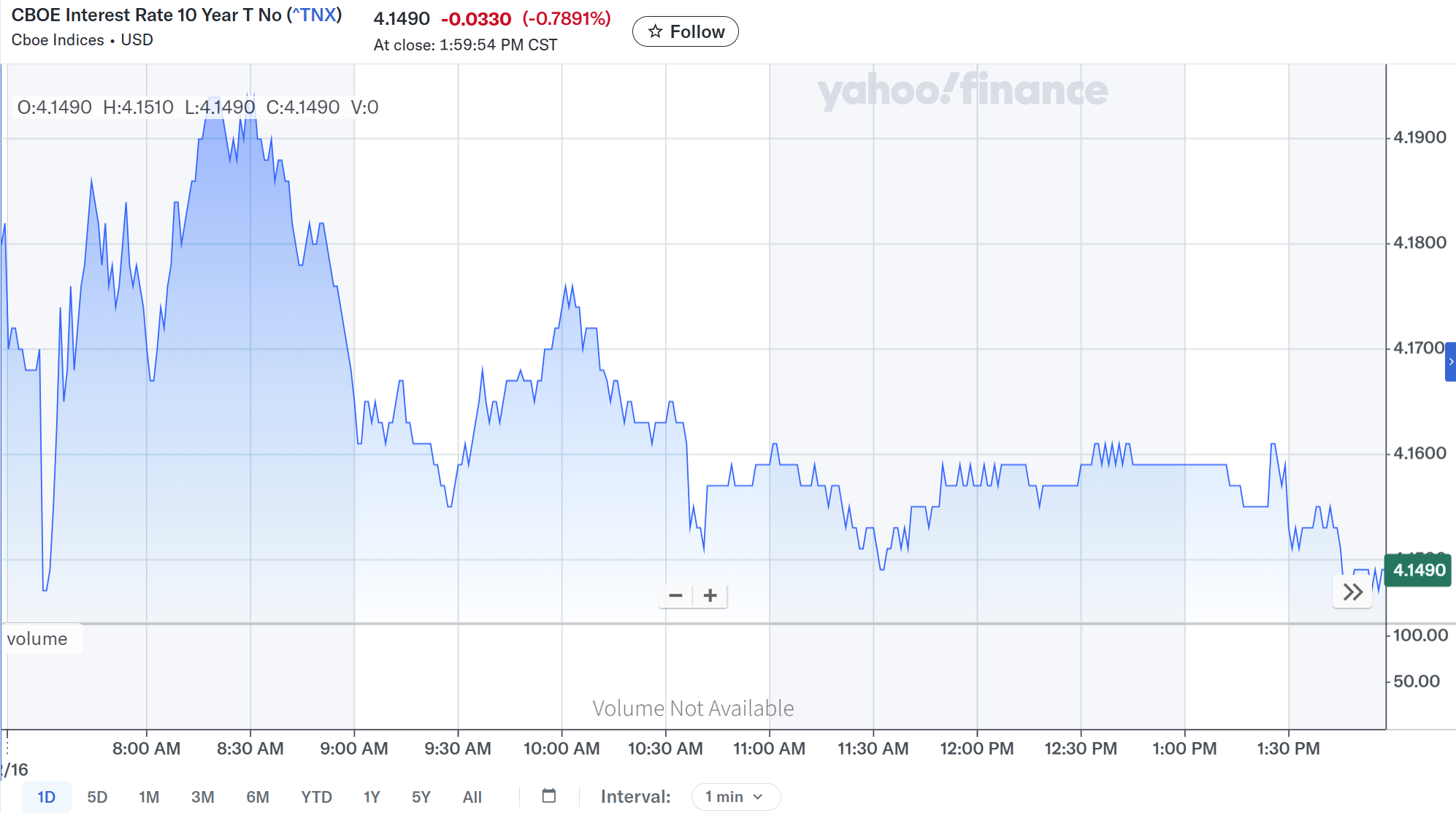 米雇用統計が発表されたタイミングで一瞬利回りは低下したが、その後すぐに利回りは上昇して前日を上回る。ただその状況は長続きせずに米国株式市場が開場すると利回りは低下し、そのまま取引を終えている。