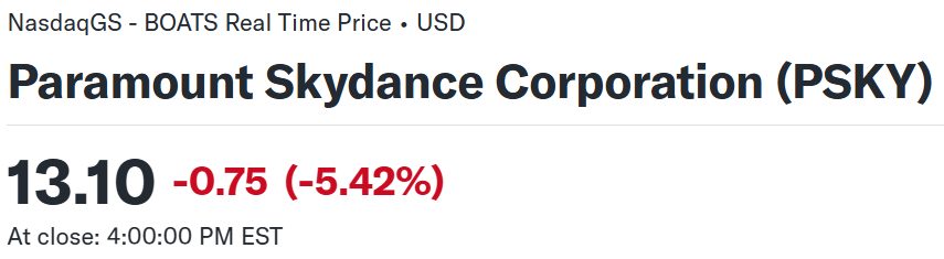 しかし週が明けた12月8日(月)には、ワーナーブラザース買収の別の有力候補の一つであったパラマウント・スカイダンス(PSKY)が敵対的買収を提案していた(こちらは全社で現金買収のみ(@30ドル))。