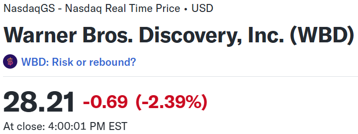 2025年12月5日(金)には自分の所有するワーナーブラザース・ディスカバリー(WBD)がネットフリックス(NFLX)により買収されることが両社から発表された(全社ではなく、主に映画スタジオ、ストリーミング部門のみでケーブルテレビ事業は除く。また現金買収のみでなく一部株式交換(@23.25ドルとネットフリックス株4.50ドル分、合計@27.75ドル))。