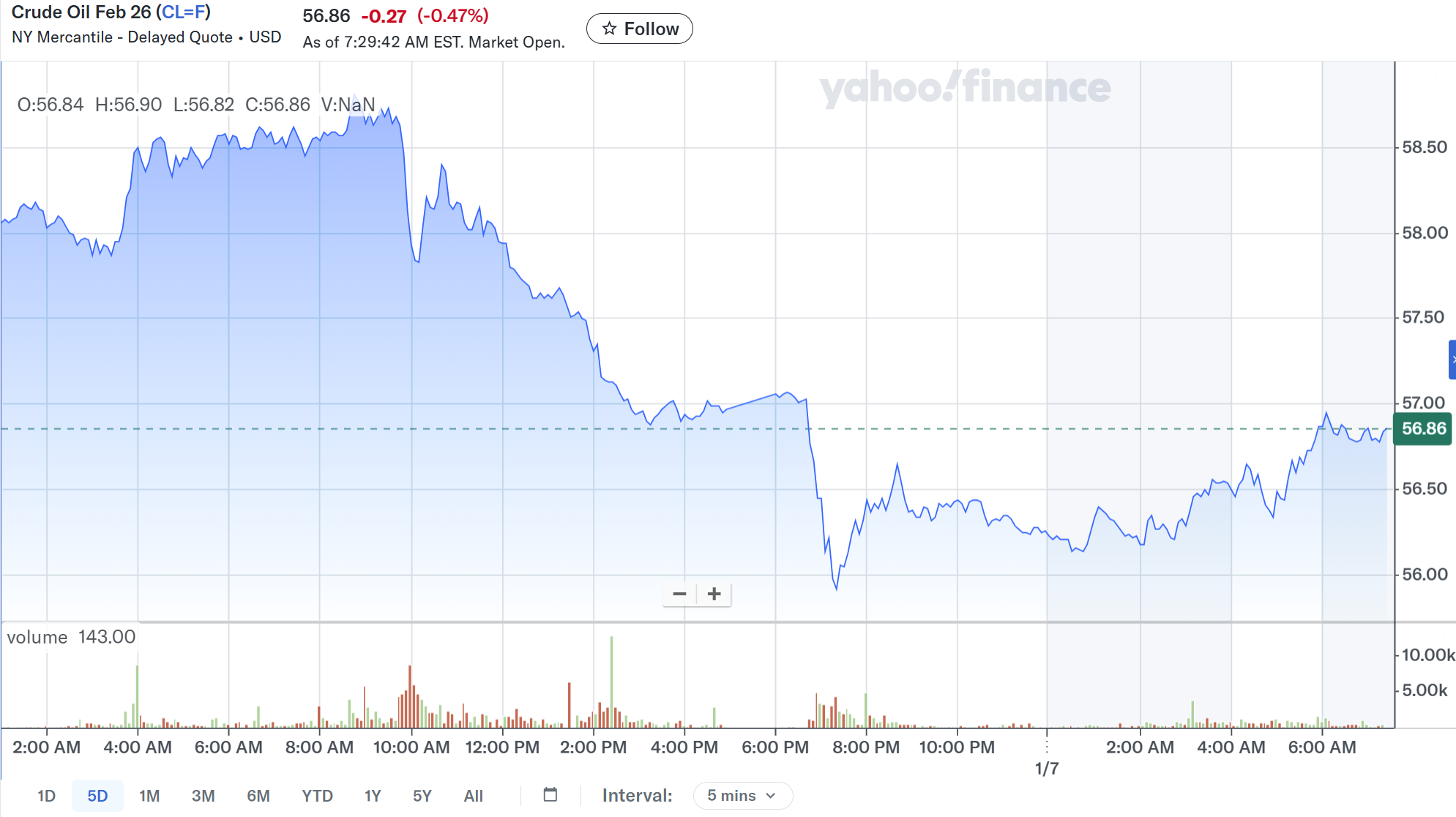 この報道があったのは米東部標準時10時前で、そこから上述チャートの様にニューヨーク原油先物価格が1バレル=58.50ドル位から1バレル57.0ドル前後まで下落。そして米国株式市場閉場後にトランプ大統領がSNSに以下の投稿をしており、更に一段安となり一時1バレル=56ドルを割り込んでいる。