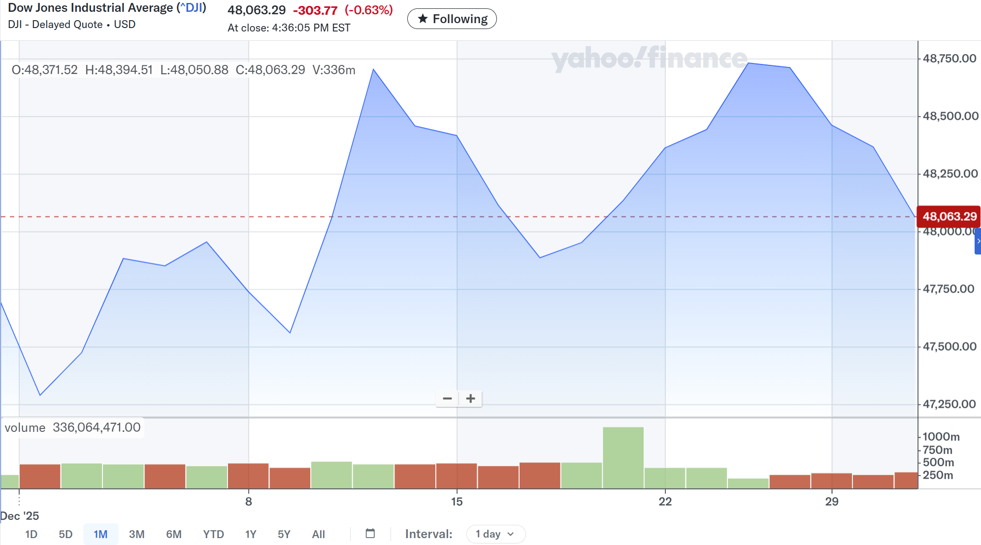 2025年12月末終値:48,063.29