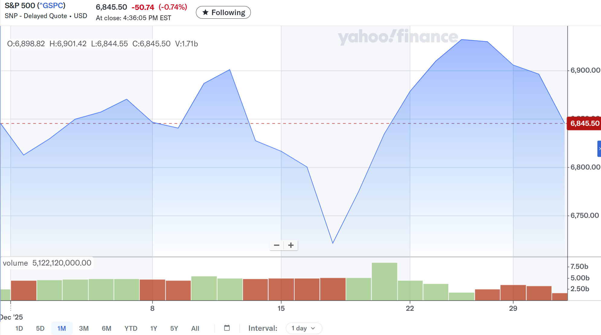 2025年12月末終値:6,845.50