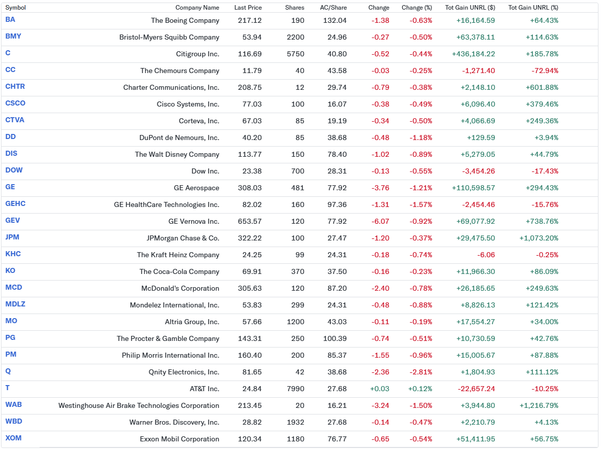 2025年11月末と12月末の自分の米国株ポートフォリオは以下の通り。