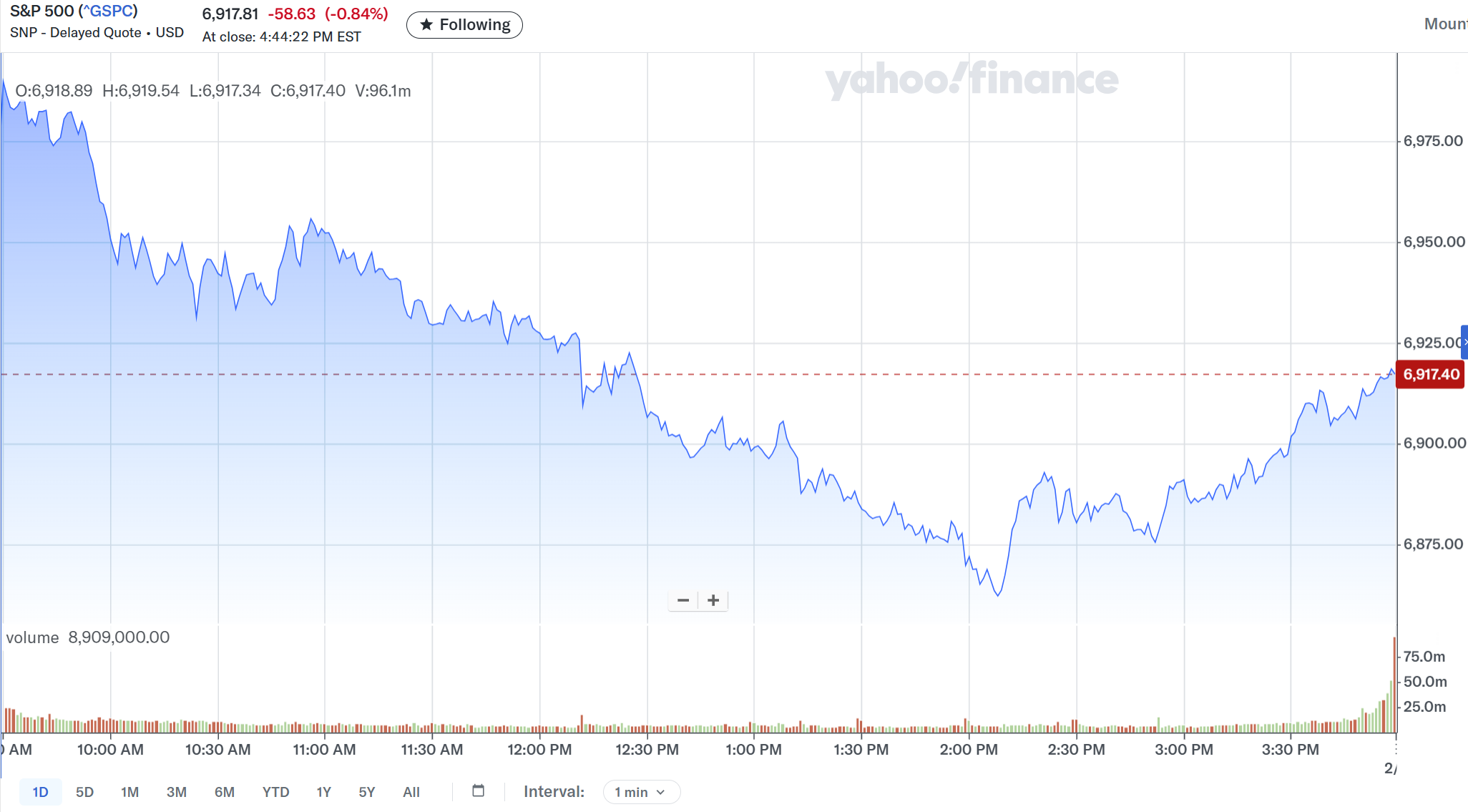 主要3株式指数いずれも同じ様な動きで下落して取引を終えている。ただS&P 500の日中の動きを見てみると