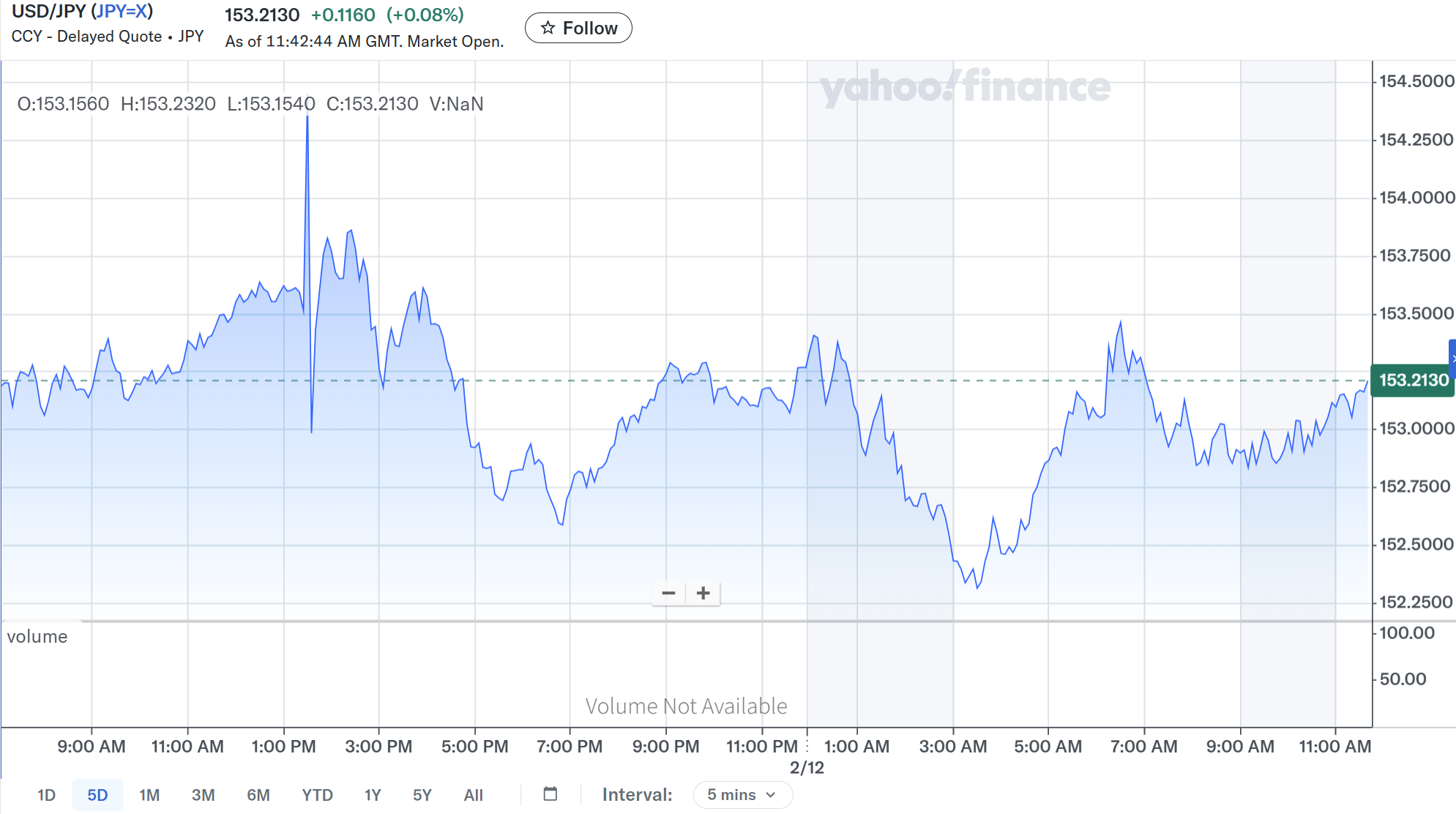 そして2月12日の日本市場が始まると(上記GMTチャートでは2月12日0:00時)再びドル安となり1ドル=152.5円を割り込む局面もあったが、2月12日の米国市場開場前時点では1ドル=153円台前半での推移が続いている。