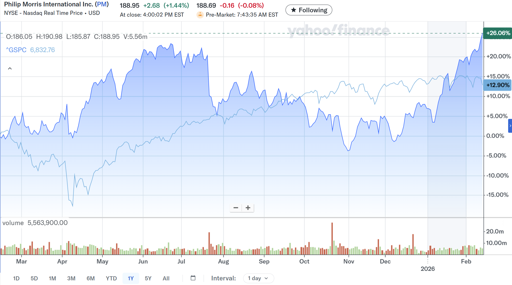 2月第1週に根強く続いたAI投資に対する懸念による下落が幾分和らいだのか、いずれも大きく上昇したのと比べるとフィリップ・モリス株は前日比プラスになったとはいえ見劣りがする。