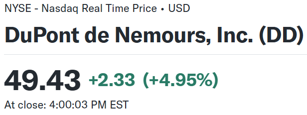 上記の様な決算を受けてデュポン・ドゥ・ヌムールの株価は