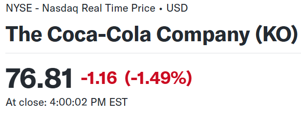 上記の様な決算内容を受けてコカ・コーラの株価は
