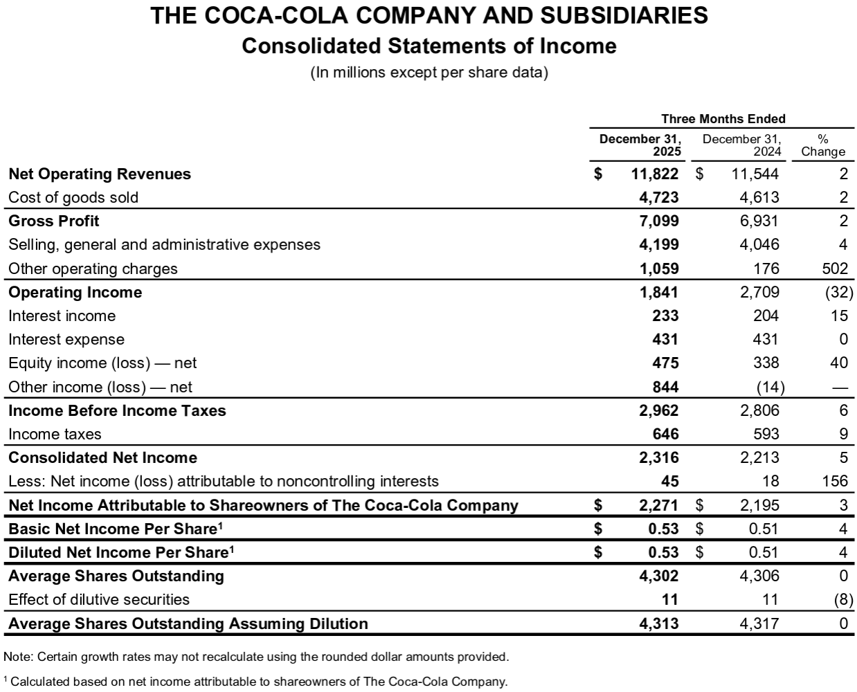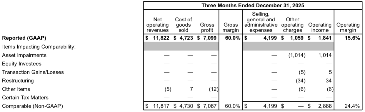 コカ・コーラ(KO)2025年第4四半期決算(2026/2)