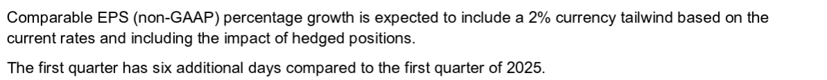 • Comparable EPS(為替を含む調整後EPS)成長率:7~8%(2025年は3.00ドル)
