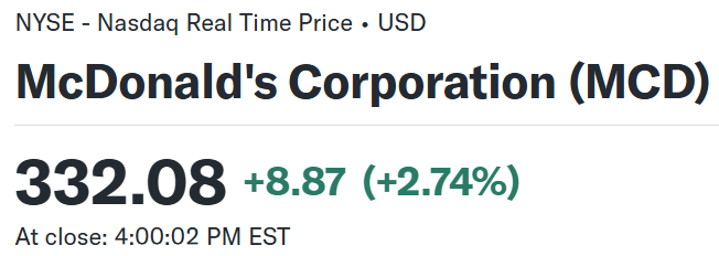 以下にマクドナルドの今回決算そしてそれを受けての株価を確認し、整理しておく。