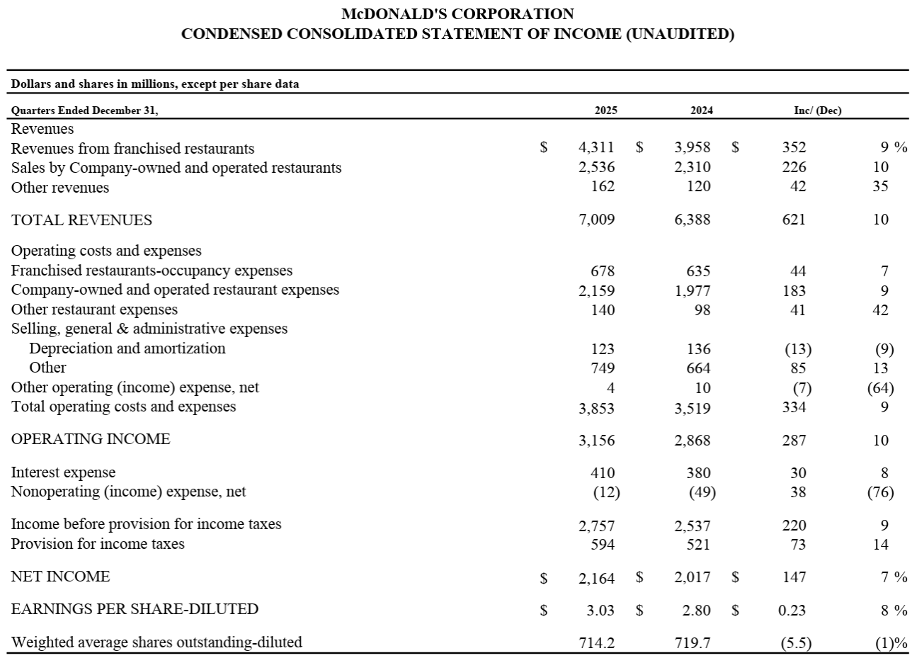 マクドナルド2025年第4四半期決算概要