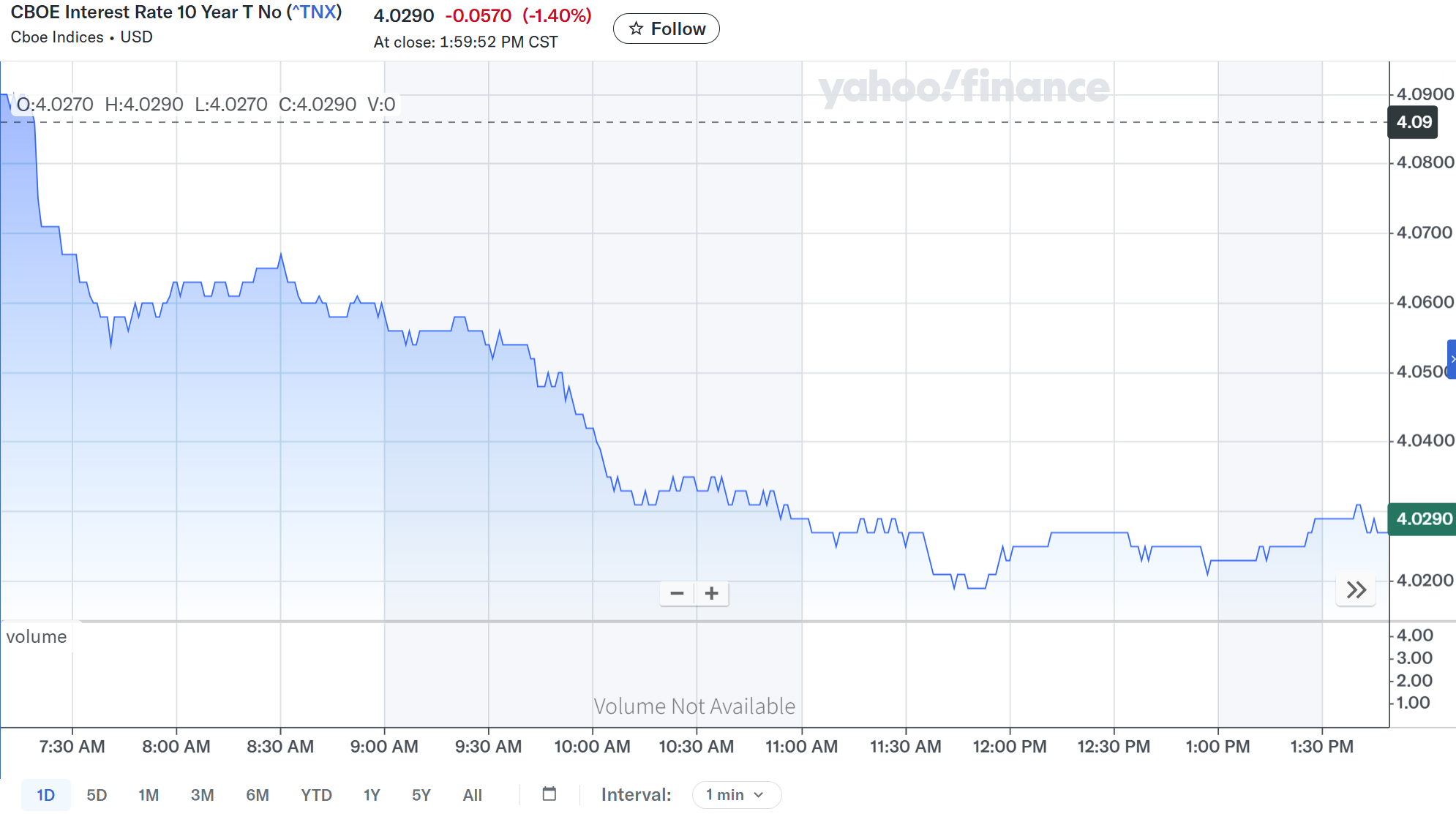 米債券市場は株式市場前に取引が始まり、米国株式市場下落の要因として挙げた一律関税10%から15%への懸念、AIへの懸念、信用不安などのためか、株式市場から債券市場へ資金が流入したようで利回り低下(債権買い)傾向。その流れは特に変わることなく取引を終えている。