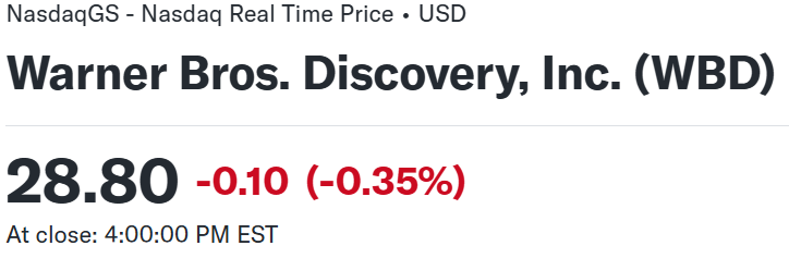 上記の様な決算発表を受けてワーナーブラザース・ディスカバリーの株価は
