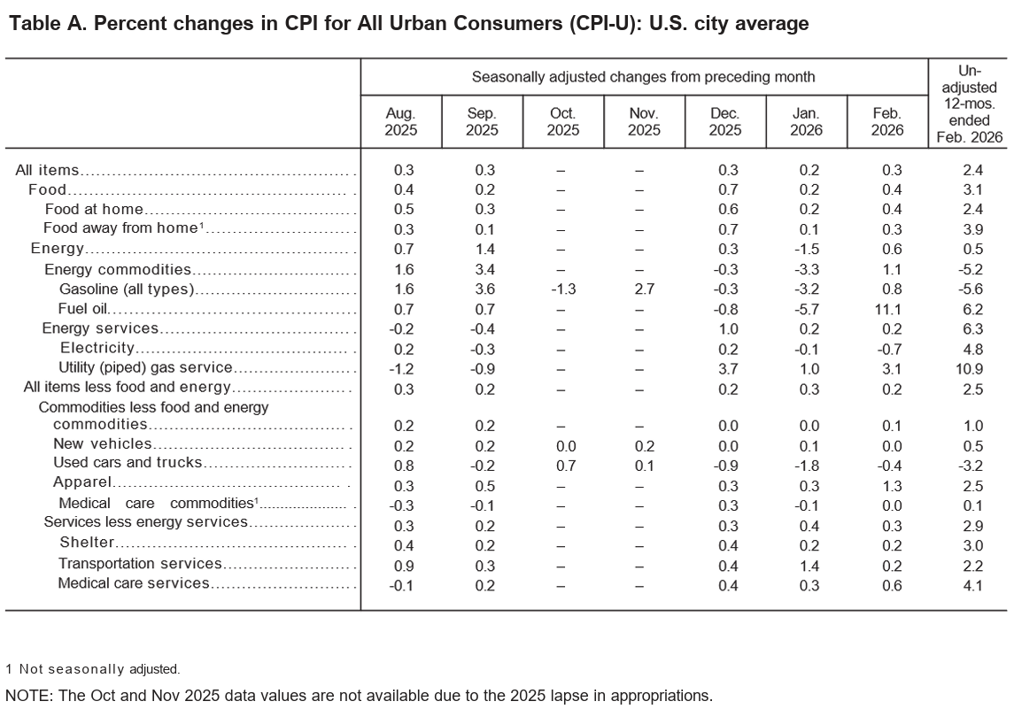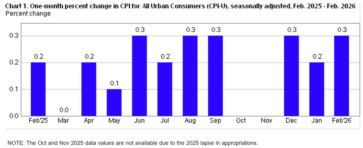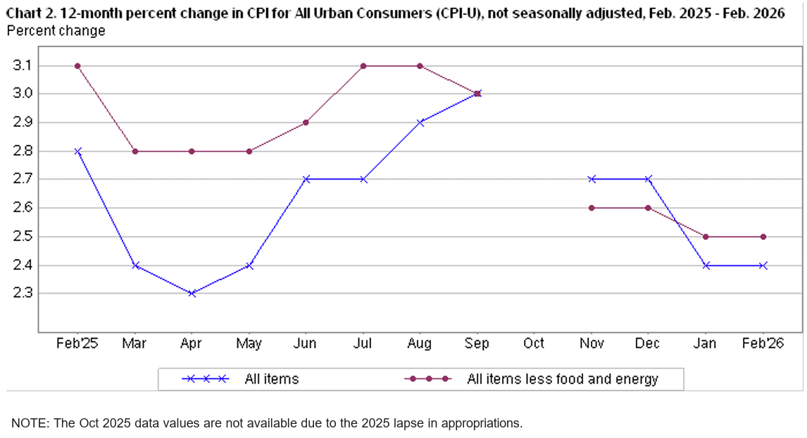 2026年3月11日米労働省労働統計局(U.S. Bureau of Labor Statistics)発表の2026年2月消費者物価指数(CPI)
