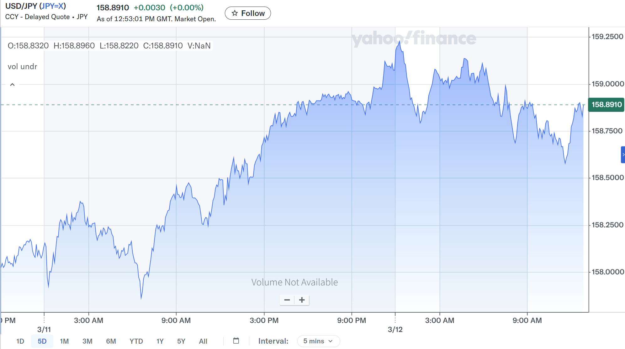 1ドル=159円台となると2026年1月にあったレートチェック(すなわち為替介入)が意識されているのかもしれない。